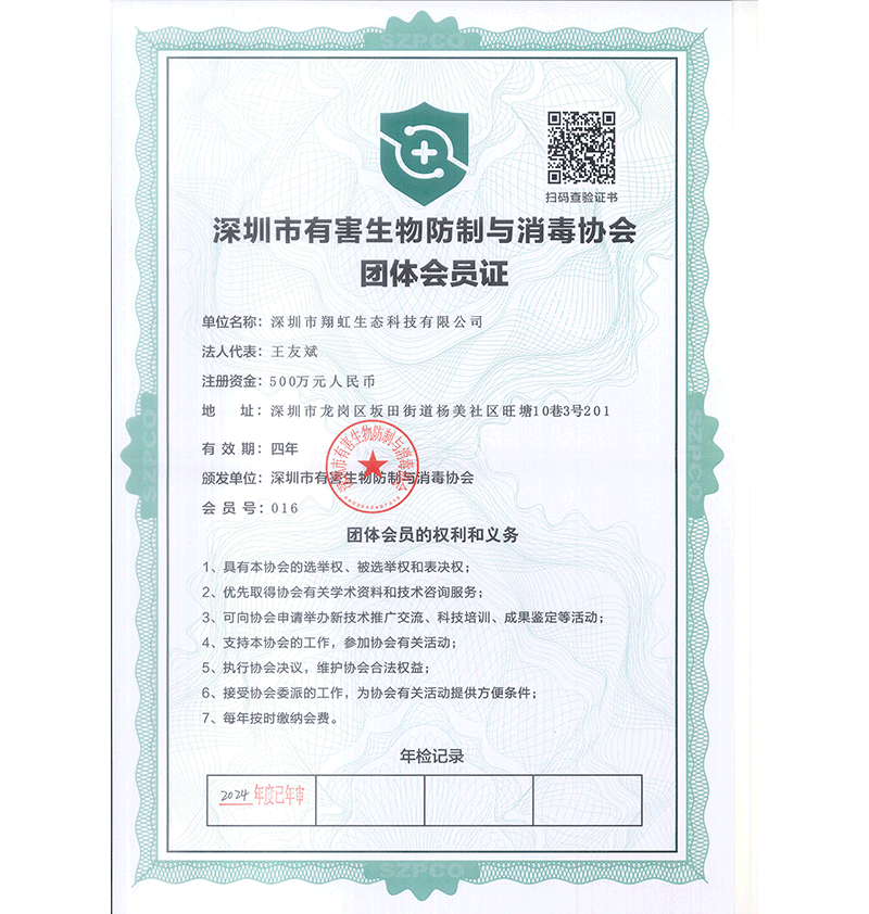 深圳市有害生物防制與消毒協(xié)會(huì)團(tuán)體會(huì)員證